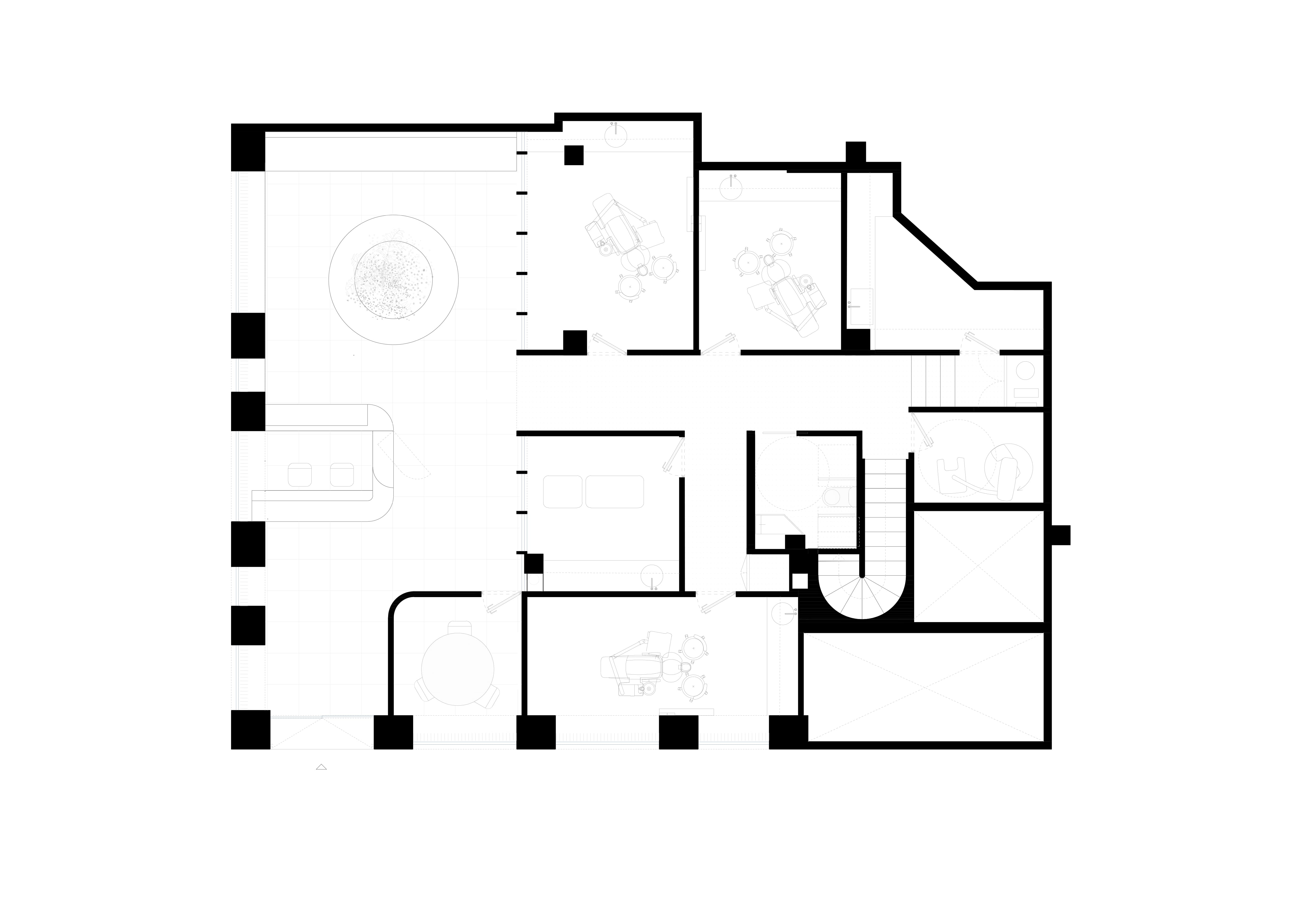 El proyecto para la Clínica de odontología y estética Durán, se plantea desde el rigor funcional y programático pero con el claro y fundamental objetivo de crear un espacio acogedor y cálido sin perder el caracter aséptico que debe prevalecer en los entornos sanitarios. Tanto a nivel de programa, como de caracter y materialidad, el proyecto se divide en dos espacios bien diferenciados: La zona de recepción y espera y la zona clínca. En la zona de local donde se cuenta con doble altura, se sitúa la zona de recepción, que con un carcarter urbano recibe a los clientes en un entorno muy calido, donde se han incluido vegetación y pavimentos petreos como si se tratase de una extensión privada del espacio urbano. Una “fachada” de dos alturas de vidrio acanalado y madera separa la zona clínica, a la que se accede por un único arco donde se marca el claro cambio de materialidad de la zona de gabinetes. Los cuatro gabinetes, la sala de esterilización y la de rayos se encuentran en planta baja mientras que en planta alta, de uso exclusivamente privado, se situan los almacenes, despachos, y zonas de servicio del personal.